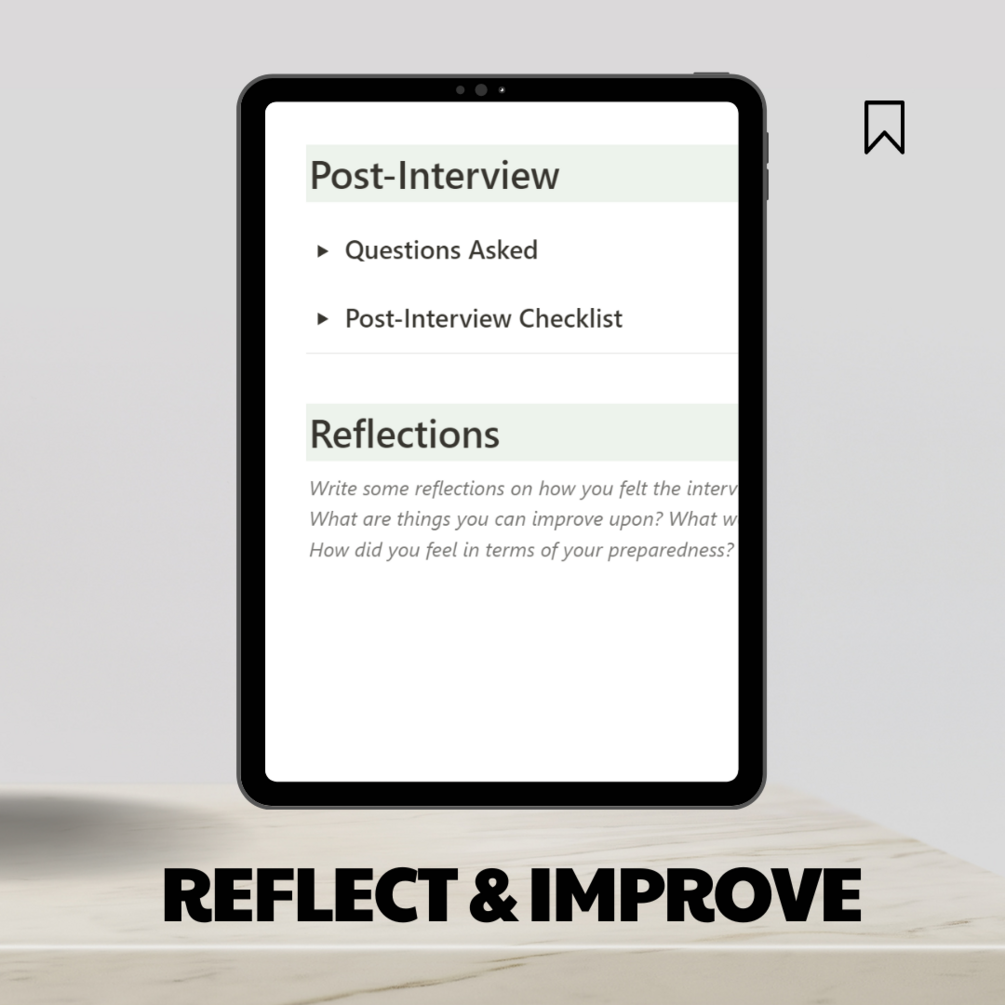 • Post-Interview Reflection: Benefit from structured reflection prompts that help you analyze your performance and plan your next steps.